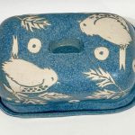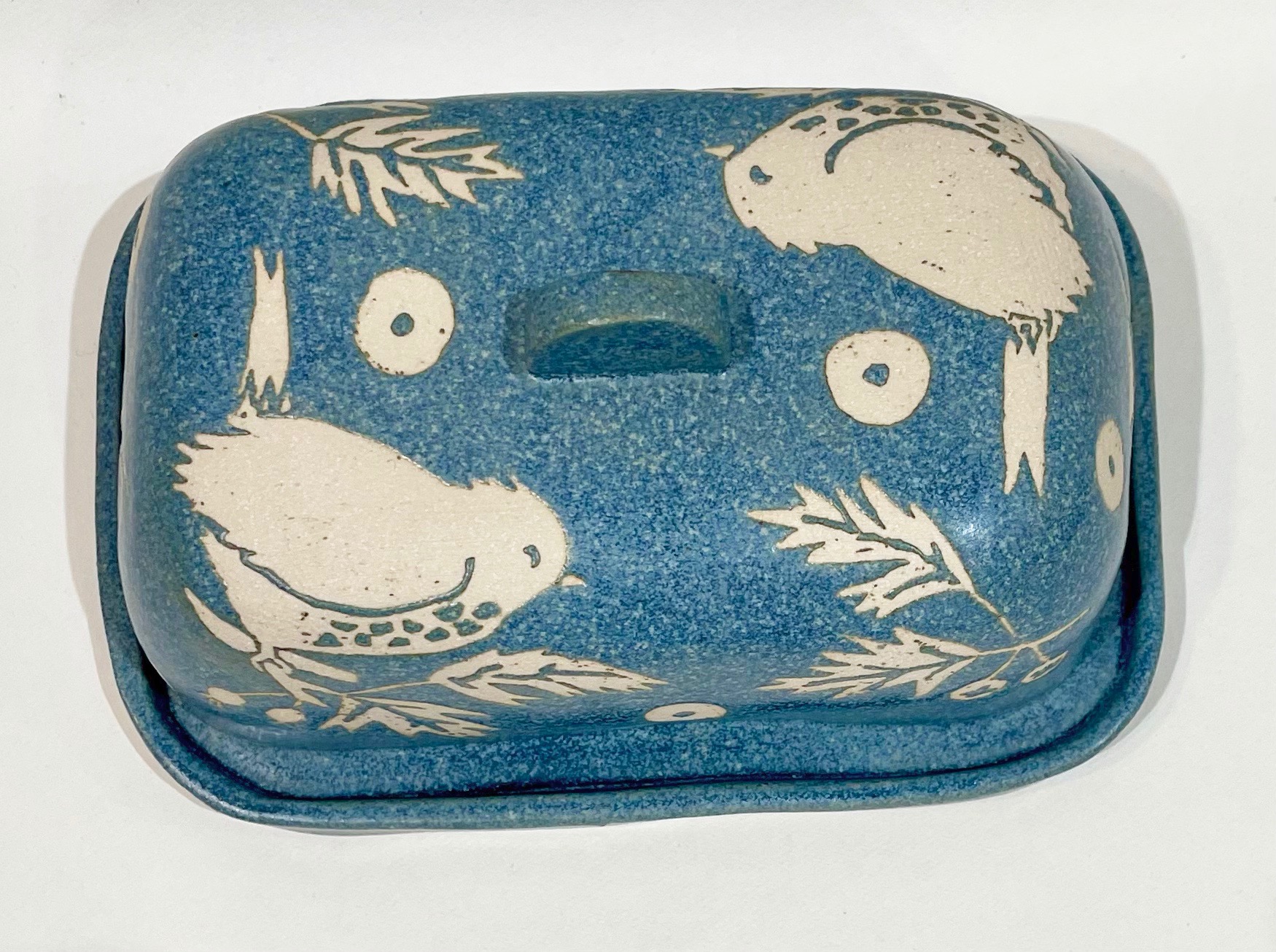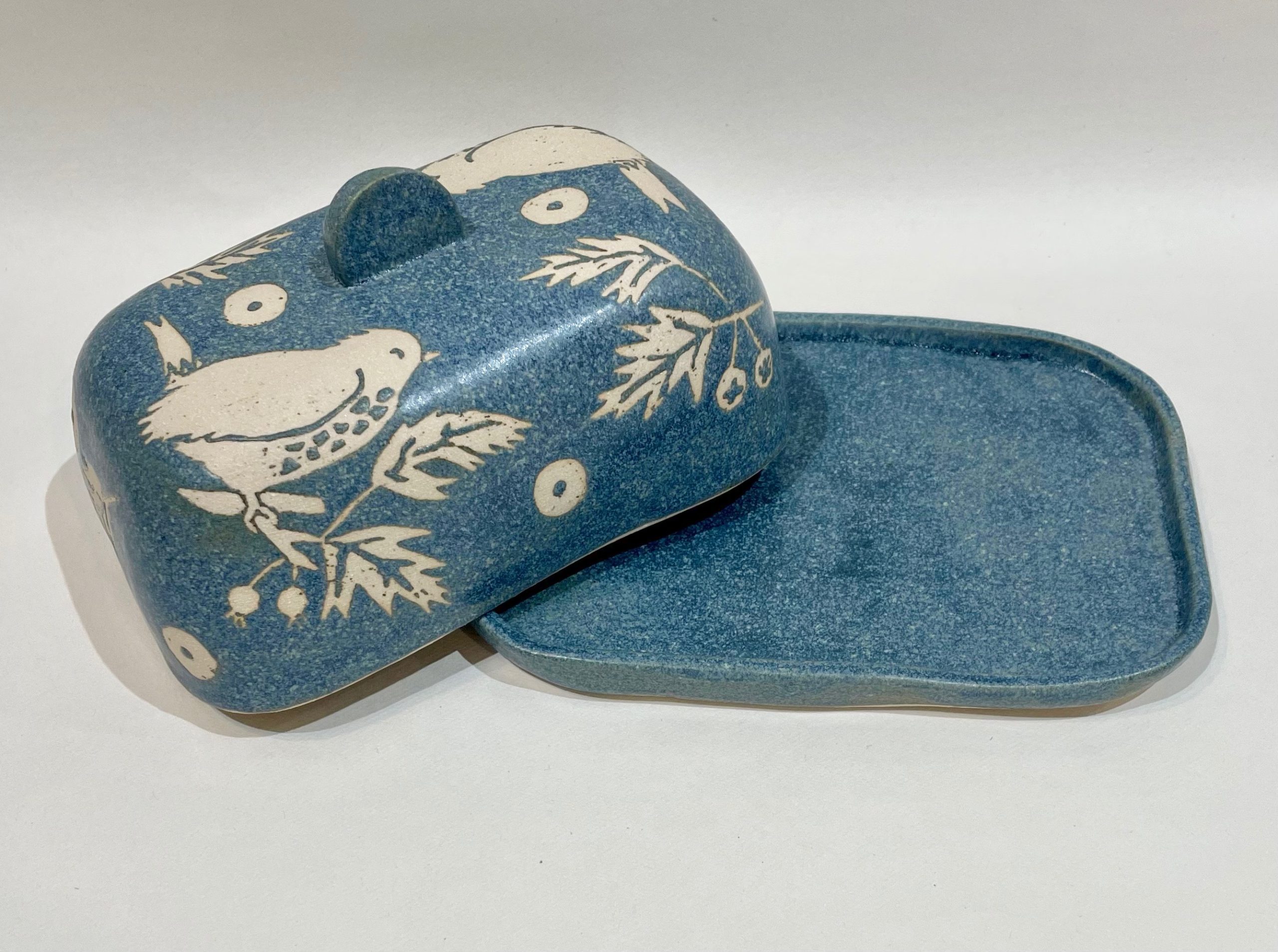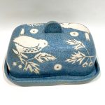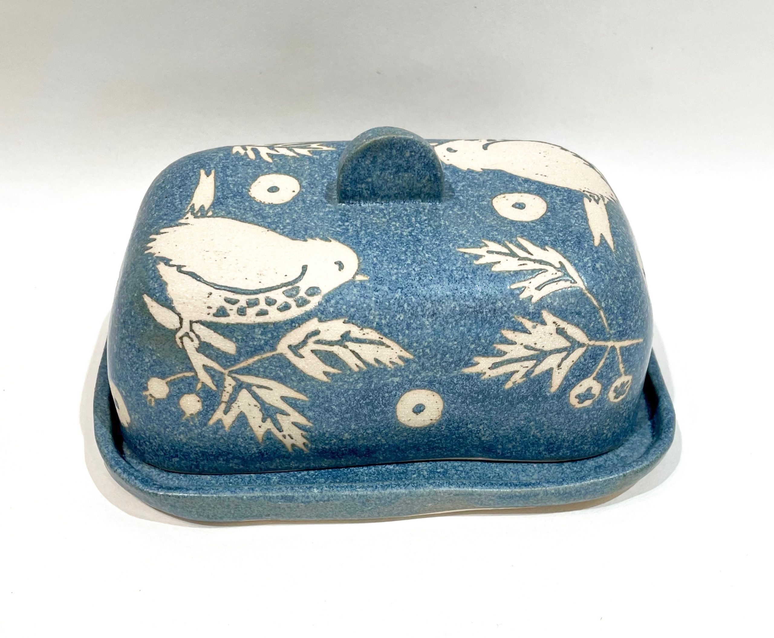Blue stoneware butter dish, Wren design
