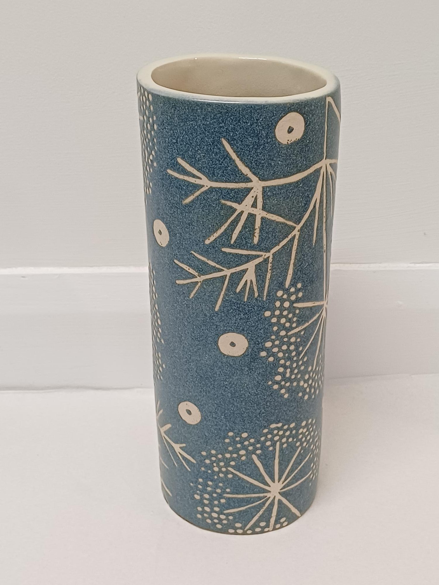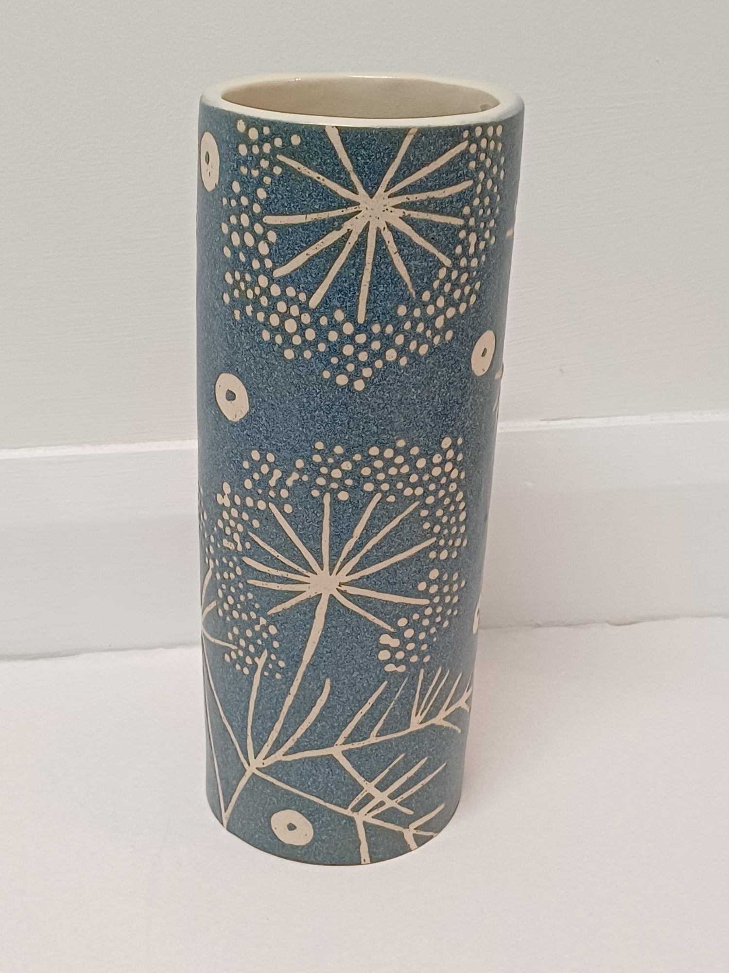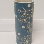 Blue stoneware tall vase, seedhead design