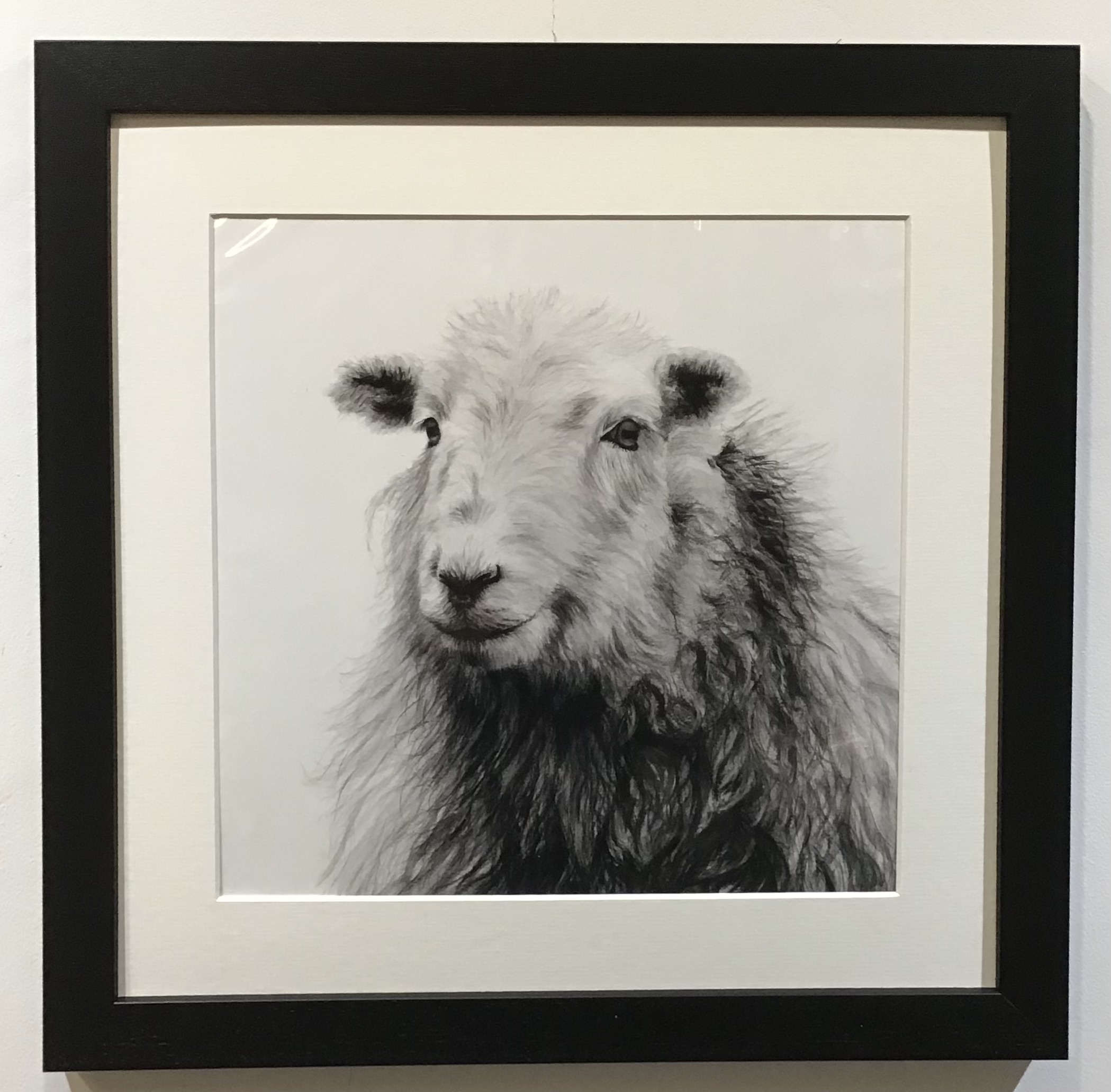 Framed, signed, limited edition “Agnes” print, by David Pooley. The frame is a painted black solid wood frame, hand cut and joined. Ready to hang on a wall. Exterior dimensions of the frame: approximately 17.5 inches square, frame thickness approx. 3cm, mount widths approx. 4 – 4.5cm. Each one is given a print number.