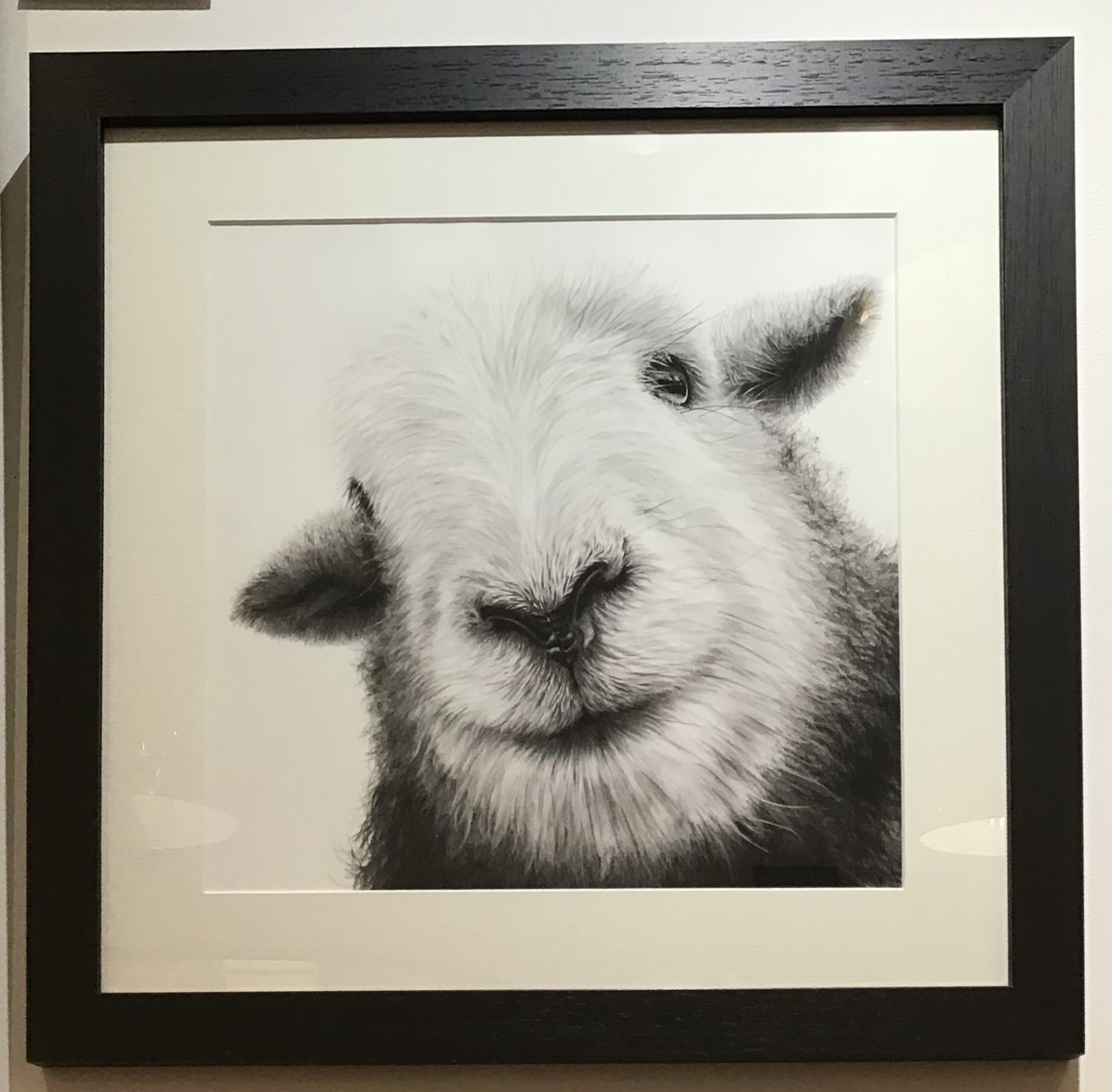 Framed, signed, limited edition “Dorothy” print, by David Pooley. The frame is a painted black solid wood frame, hand cut and joined. Ready to hang on a wall. Exterior dimensions of the frame: approximately 17.5 inches square, frame thickness approx. 3cm, mount widths approx. 4 - 4.5cm. A larger print is also available in a frame 22 inches square, frame thickness 3cm, mount width 5-6cm. Each one is given a print number, so it may be different to the number shown on the back here.