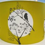 Beautifully handmade lampshade, with a Fennel and Sparrow design, on a mustard background. Available in 30cm diameter and 21cm height, or 40cm diameter and 25cm in height, for ceiling or lamps. Please choose the size and orientation you require.
